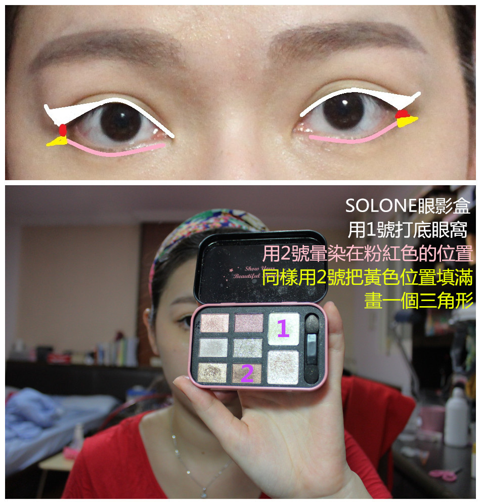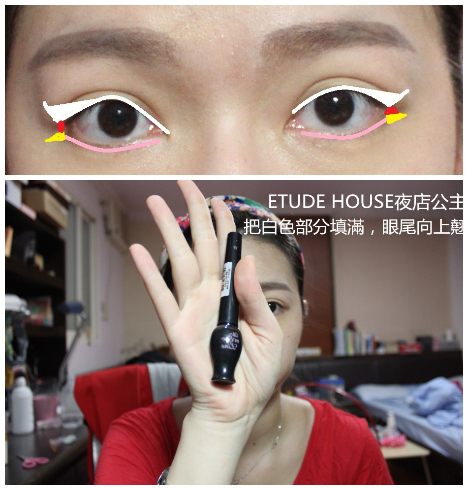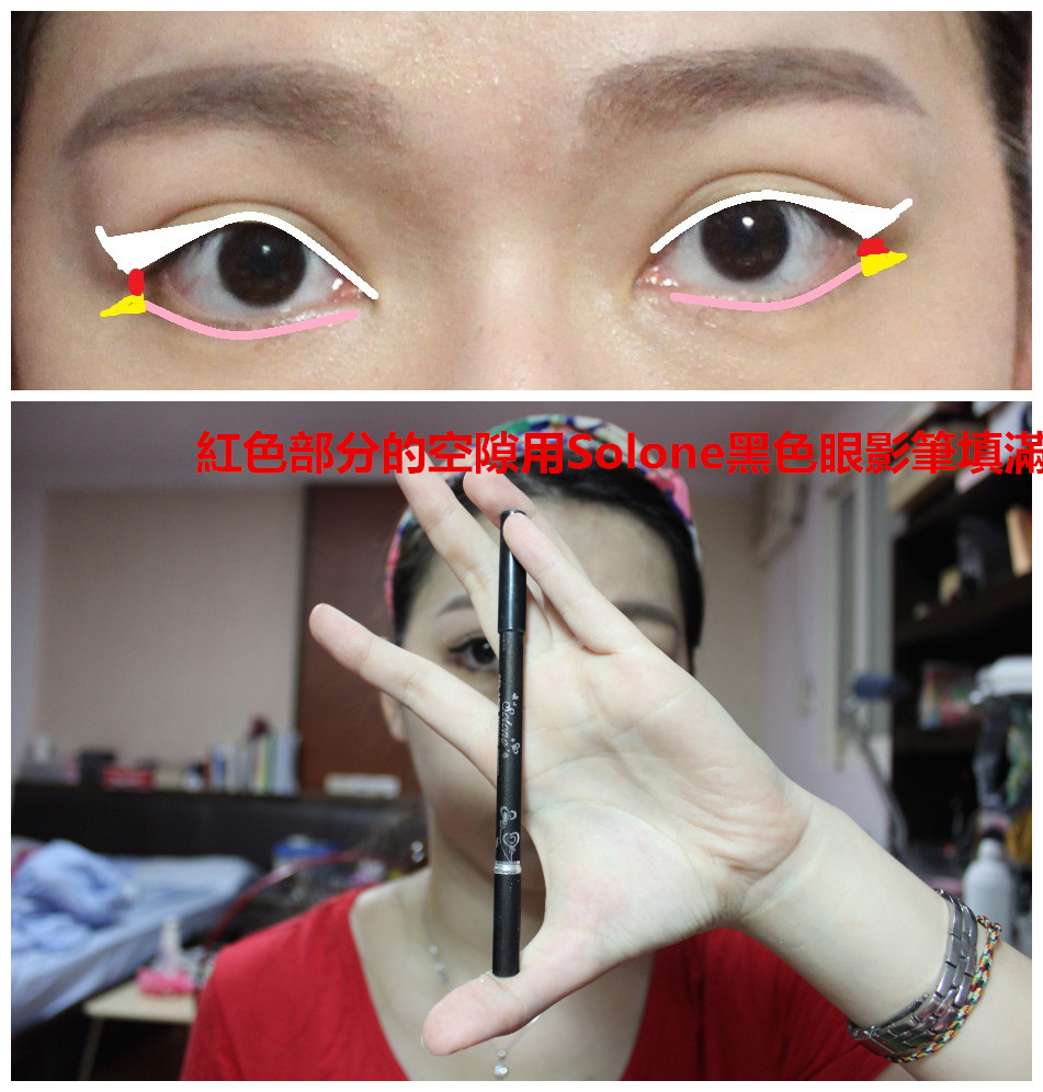 畫完之後兩個眼尾中間會有空隙(紅色的部分)